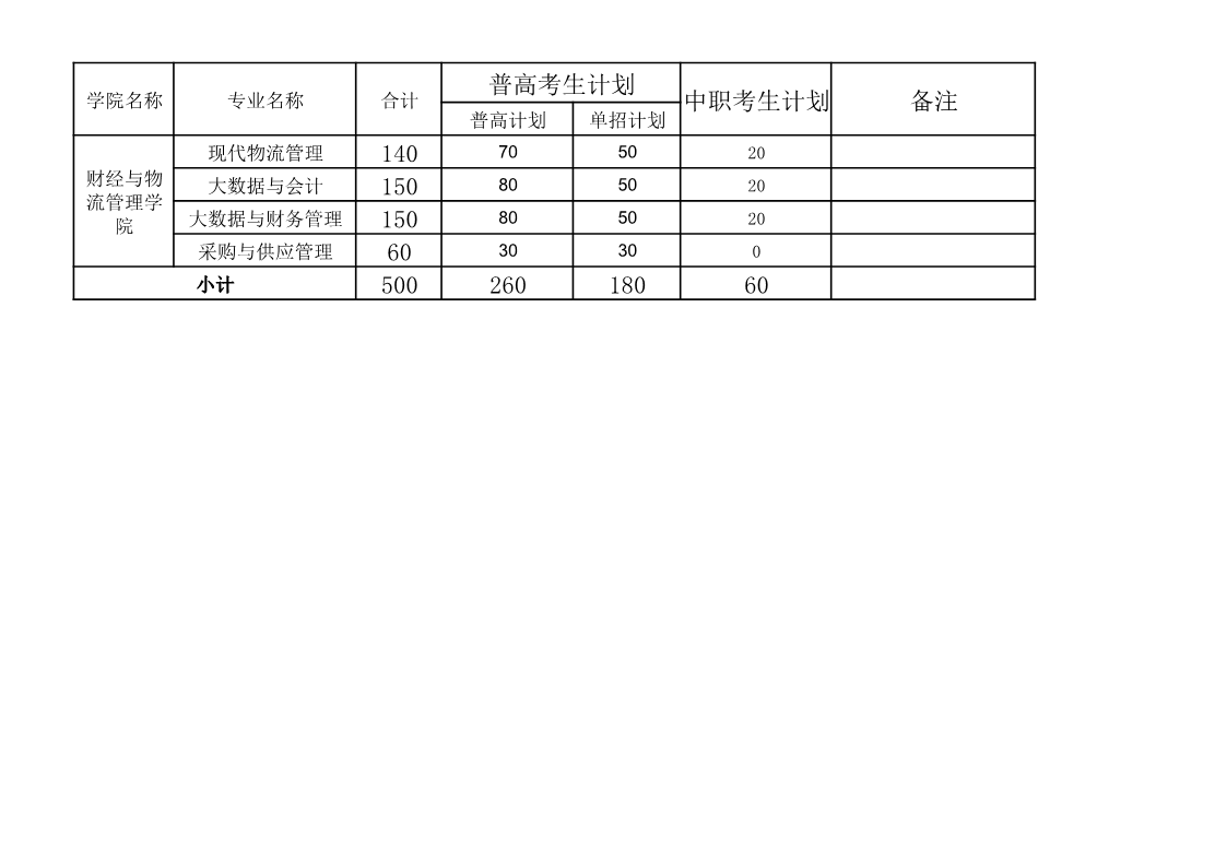 财经与物流管理学院2022年招生计划
