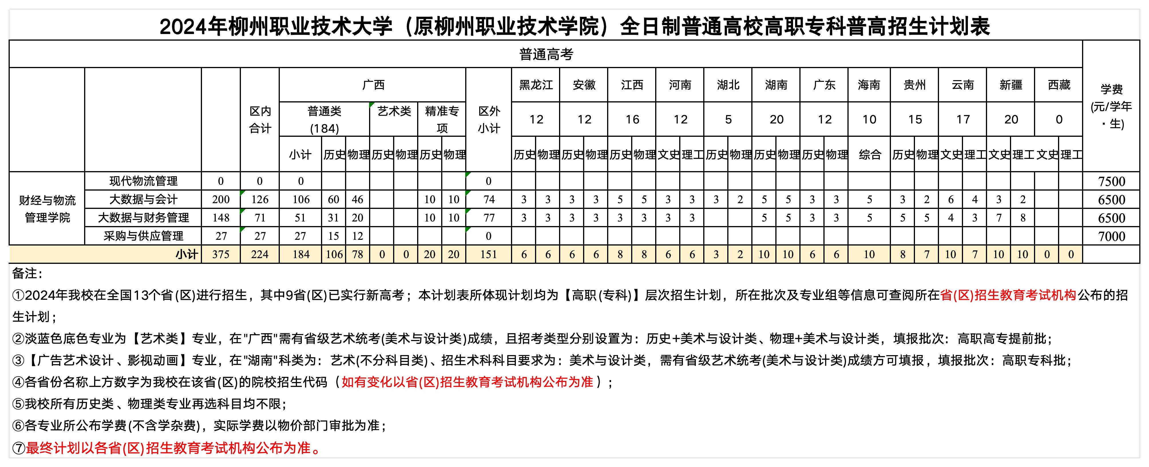 财经与物流管理学院2024年招生计划