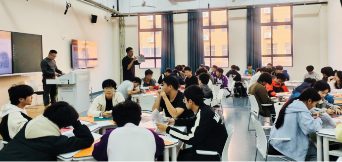 活动伊始,龙双强老师以“剪纸里的生肖文化”为主题展开分享,从剪纸的历史渊源、地域流派,讲到马在传统文化中象征的奋进、奔腾之意,结合历年生肖剪纸作品,细致讲解了折叠、起稿、剪刻、修整等核心技法。“剪马的鬃毛要快而稳,线条要飘逸;刻马蹄要精准有力,凸显稳健之感。”龙老师一边手持剪刀示范,一边拆解关键步骤,手中的红纸在几番翻转剪刻后,一匹昂首扬蹄的骏马便跃然纸上,引得现场师生阵阵赞叹。