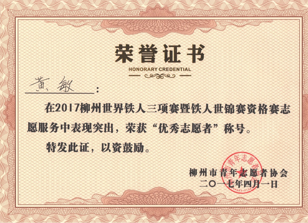 新闻网消息(文/校团委 周虹 图/校青年志愿者服务总队 廖俊、满世严)4月17日,从团柳州市委、市青年志愿者协会获悉,在2017世界铁人三项赛中国揭幕战赛事中,beat365官网60名志愿者获“优秀志愿者”称号,校团委获“最佳志愿服务单位”荣誉称号。