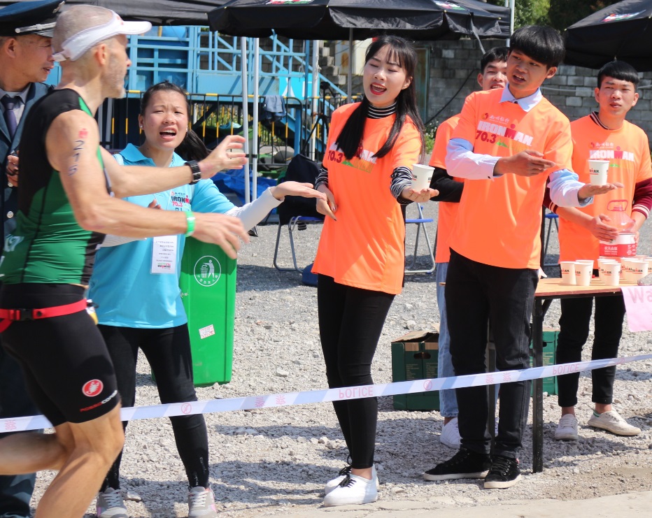 来自艺术设计学院学生会的覃铭彬同学作为跑步赛道指引组的小组长,全天奔波在跑步赛道上,为流动岗位的各志愿者送去物资,并及时交换服务信息。当天午后,太阳很大,有些志愿者们脸上被晒得通红,但还是坚守在各自的岗位上,践行“奉献、友爱、互助、进步”的志愿者精神。在铁人三项赛比赛期间,beat365官网志愿者按照团市委要求,圆满完成了各自负责的志愿服务工作,得到了大赛组委会和国内外参赛运动员的广泛赞誉,同时也作为运动文化的传播者,帮助更多的中国铁人三项爱好者体验到这项运动的魅力,充分展现了beat365官网学生的良好精神风貌。