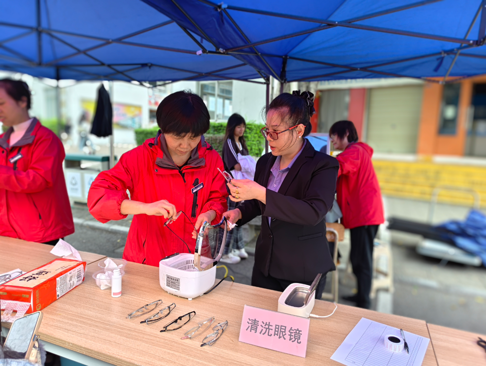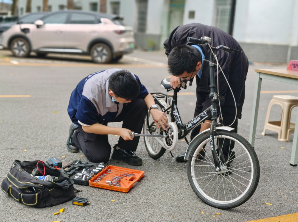 爱心便民服务区提供多项便民服务,包括量血压、衣物缝补和熨烫、眼镜清洗、爱心义剪、自行车维修等。志愿者们细致周到、高效服务,用暖心行动为师生解决生活小难题。针对教职工实际需求,活动特设汽车地垫清洗专区,物业工作人员借助专业工具,完成汽车地垫冲洗、擦拭、晾干全流程,便捷高效的服务赢得教职工一致好评。校园卫生志愿服务,学生志愿者们在物业人员的带领下,身着志愿服,手持清洁工具,分组对校园绿化带、楼道角落、操场边缘、宣传栏周边等卫生盲区进行全面清扫。大家分工协作、干劲十足,经过共同努力,校园环境焕然一新,也让同学们在劳动中体会到志愿服务的价值,树立了爱护校园环境的责任意识。