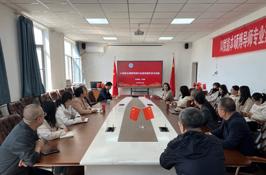 马向真教授围绕AI赋能教育教学科研改革的必要性、导学关系的内涵特征与建构过程、AI时代学生指导的新挑战及AI技术的科研伦理与提升路径进行了等议题,进行了系统性的讲解。她以详实的研究数据和前沿案例为支撑,深入剖析AI赋能导师专业素养的底层逻辑,提出“人机共育”的理念架构和核心特质,为在场教师勾勒出既具理论前瞻性又富实践指导性的专业素养提升路线图。在场教师结合AI工具在教学场景中的创新应用、导学过程中面临的实际困惑等问题,与马教授展开了深入交流研讨,现场气氛活跃热烈。