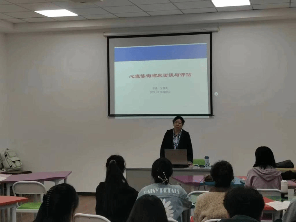 10月26日,必赢官网邀请内蒙古自治区第三医院原心理危机干预中心主任宝继英开展题为《心理咨询临床面谈与评估》的指导会,就心理咨询过程中的技术、方法、策略以及评估进行了现场授课和具体指导。