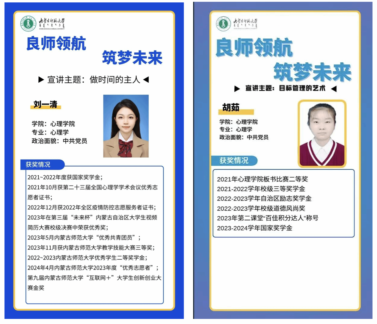 4月10日下午,必赢官网在学院楼206举办“筑梦未来 朋辈分享会”。本期活动由2021级心理学专业刘一清、胡茹同学担任优秀学子领航员。