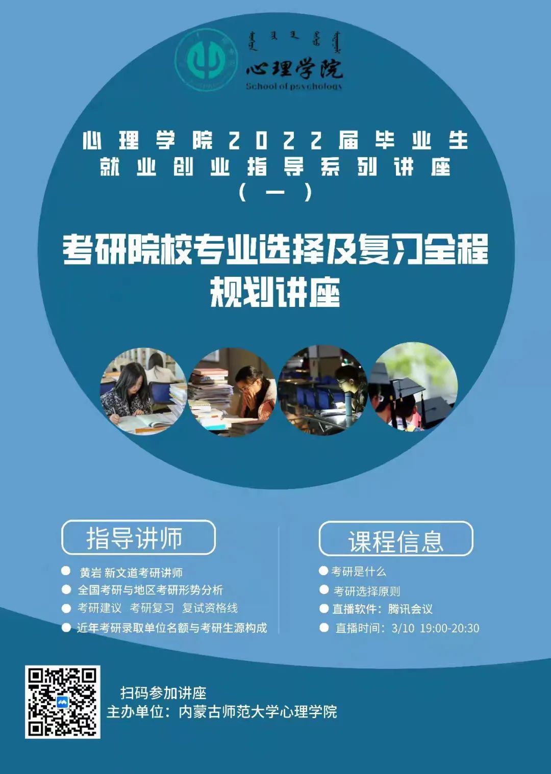 为丰富2019、2020级学生对考研的相关知识,激发学习热情、增强考研信心,必赢242net官网于2022年3月10日晚19点开展了2022届毕业生就业创业指导系列讲座(一)——考研院校专业选择及复习全程规划讲座。