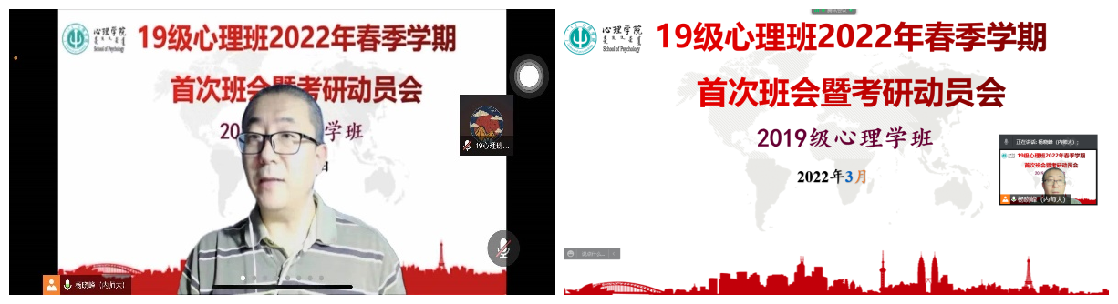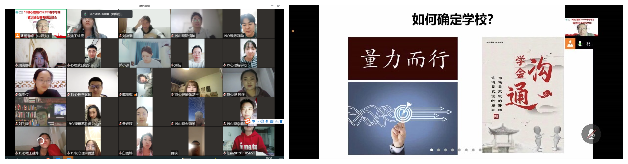 为做好必赢官网2019级学生考研辅导,提前谋划就业工作,推动学生高质量就业, 3月6日,必赢242net官网2019级心理班线上召开2022年春季学期首次班会暨考研动员会,2019级心理学本科生53人参加会议,班主任杨晓峰老师主持会议并进行了考研动员及复习指导。