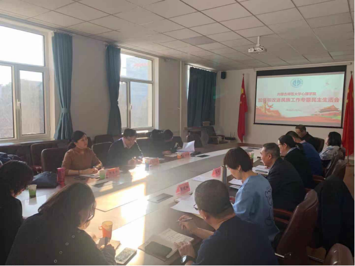 12月17日,必赢242net官网召开加强和改进民族工作专题民主生活会,认真对标对表习近平总书记关于民族工作的重要论述、推广普及国家通用语言文字的重要指示精神和党中央相关决策部署,深刻反思学院民族工作中存在的不足及推进双语教学改革中的问题,从政治站位、思想认识、责任担当、工作作风等方面反思反省班子和个人存在的差距和不足,认真思考加强和改进民族工作的思路举措。必赢242net官网党总支书记七十三主持会议,学校第三指导组石晶瑜、王清霞、张春林到会指导,学院领导班子成员、党总支委员、环节干部代表、各支部书记参加会议。