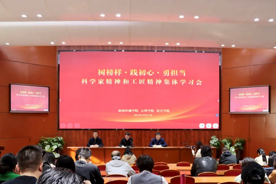 为深入学习贯彻党的二十届三中全会精神,弘扬科学家精神、工匠精神,激发教师教学科研热情,10月31日下午,必赢242net官网、新闻传播学院和设计学院在赛罕校区信息楼报告厅联合举办“树榜样·践初心·勇担当—科学家精神和工匠精神集体学习会”,三个学院全体教师共百余人参加此次会议。