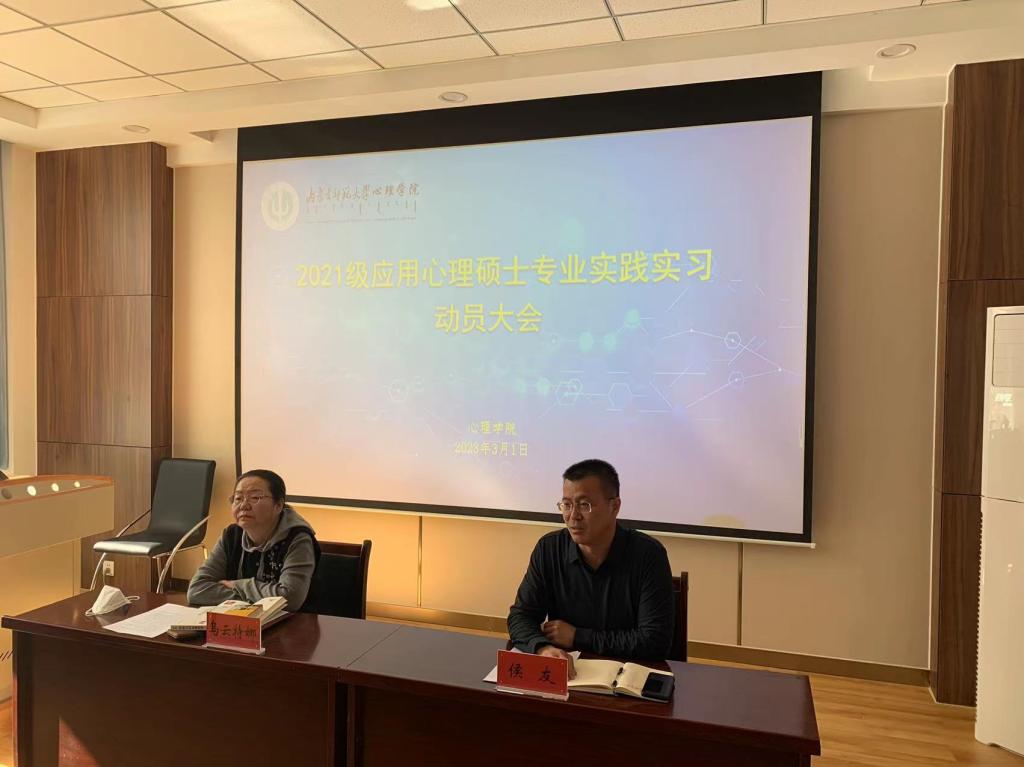 3月1日上午,必赢官网召开2021级应用心理专业硕士研究生实习实践动员会,院长乌云特娜教授、副院长侯友副教授,部分指导教师、班主任老师及2021级应用心理专业全体研究生参加动员会。