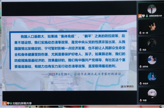 为落实“立德树人”的根本任务,普及疫情防护知识,铸牢中华民族共同体意识,进一步加强思想教育、生命教育、心理健康教育、优良学风建设。让学生在疫情期间形成良好的生活和学习习惯,提高学生文明素养、守规矩、懂感恩、明事理,拥有积极阳光、乐观向上的心态。学院团总支开展了系列思想教育、健身活动和主题团日活动。