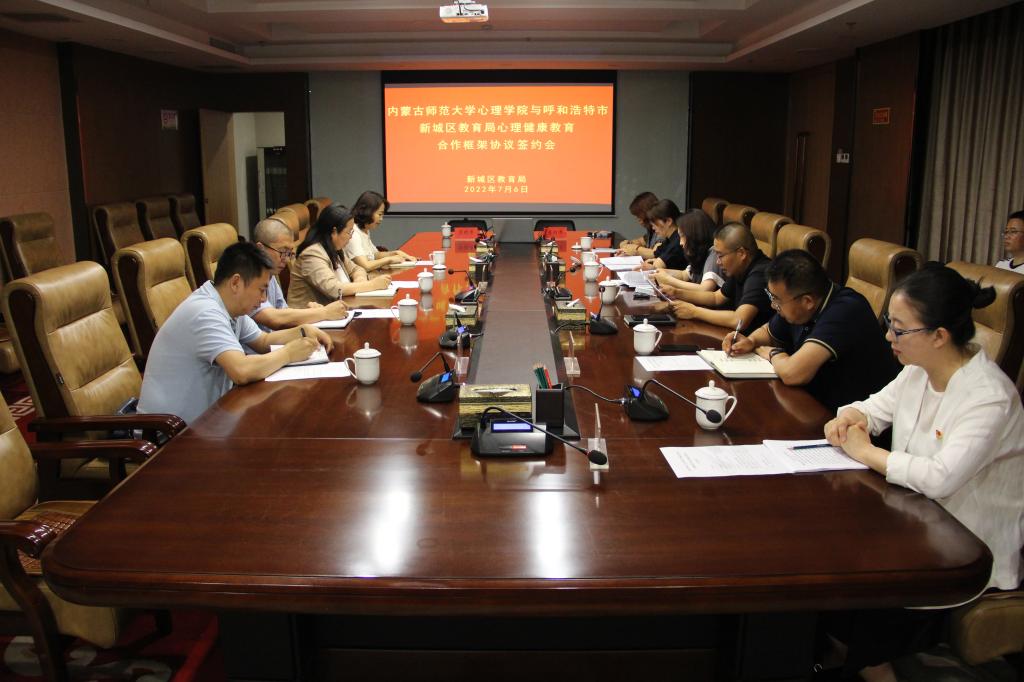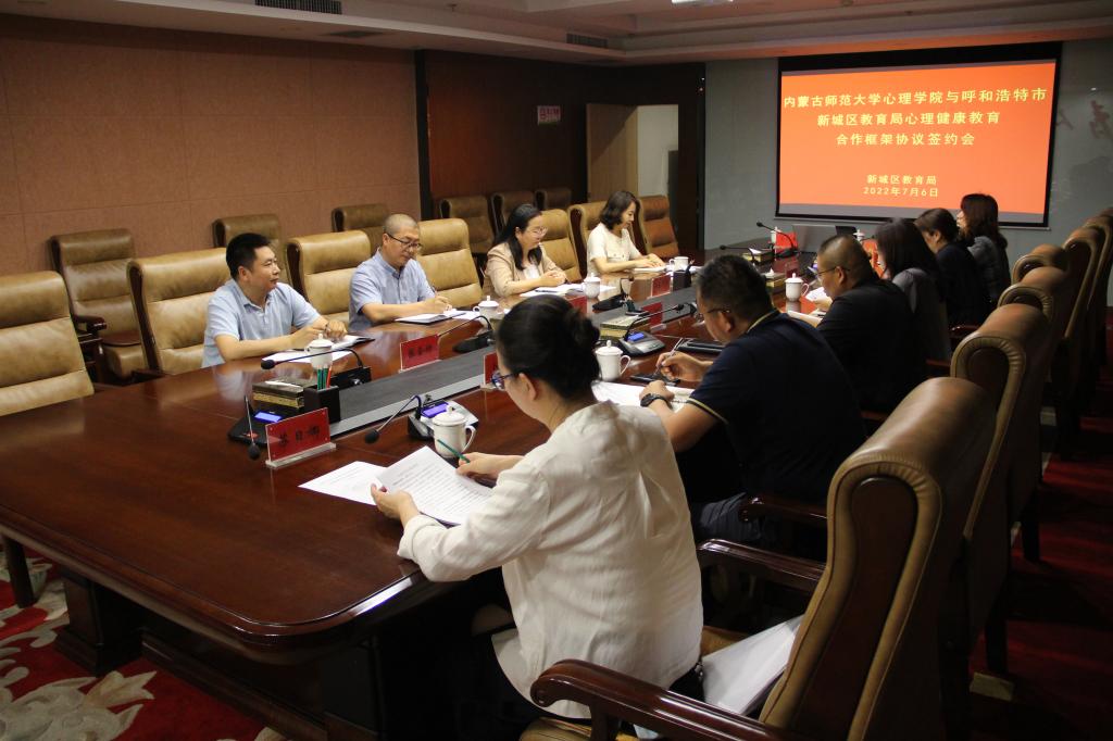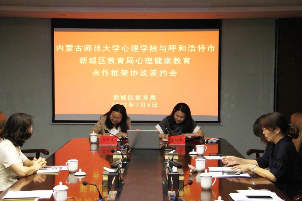 为进一步加强实践教学,提升人才培养质量,促进毕业生高质量就业,发挥学科专业优势,助力社会心理服务体系建设,7月6日下午,必赢官网与新城区教育局心理健康教育合作框架协议签约暨必赢242net官网教育实践与就业基地挂牌仪式隆重举行。新城区教育局党组书记、局长黄咏梅,新城区教育局副局长商辉、郝素兰、卜二军,新城区教育局机关纪委书记武爱珍;必赢242net官网院长乌云特娜,院党委副书记、副院长张晓阳,心理学系系主任杨晓峰,学生工作与就业办公室主任张金钟等参加会议。