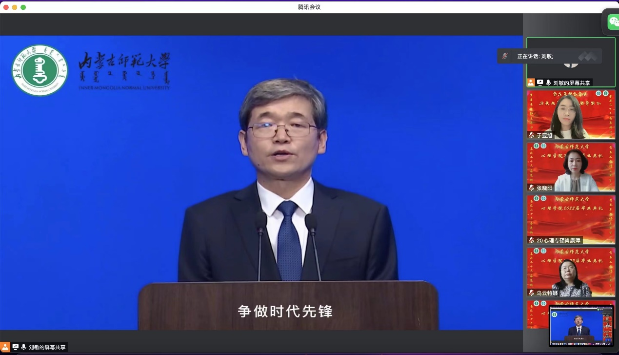 必赢242net官网院长、博士生导师乌云特娜教授为全体毕业生送上深情寄语。她称赞同学们在疫情的考验之下仍然能够以理性平和的心态去处理问题,殷切嘱托同学们要脚踏实地、不忘初心,也要志存高远。牢记习近平总书记在今年建团百年讲话上对青年的殷切期望。最后乌院长教诲同学们,要常怀感恩,必赢242net官网永远是我们共同的家,欢迎大家随时回家。