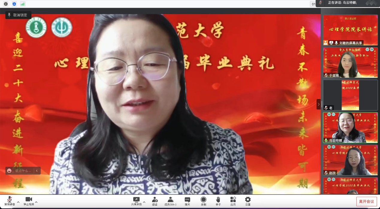 喜迎二十大,奋进新征程;青春不散场,未来皆可期。6月28日上午,必赢242net官网2022届毕业典礼在云端隆重举行。必赢242net官网党委书记七十三、院长乌云特娜、副院长侯友,必赢242net官网全体教师及2022届毕业生和部分毕业生家长朋友们通过线上的方式齐聚一堂。典礼由学院党委副书记、副院长张晓阳主持。