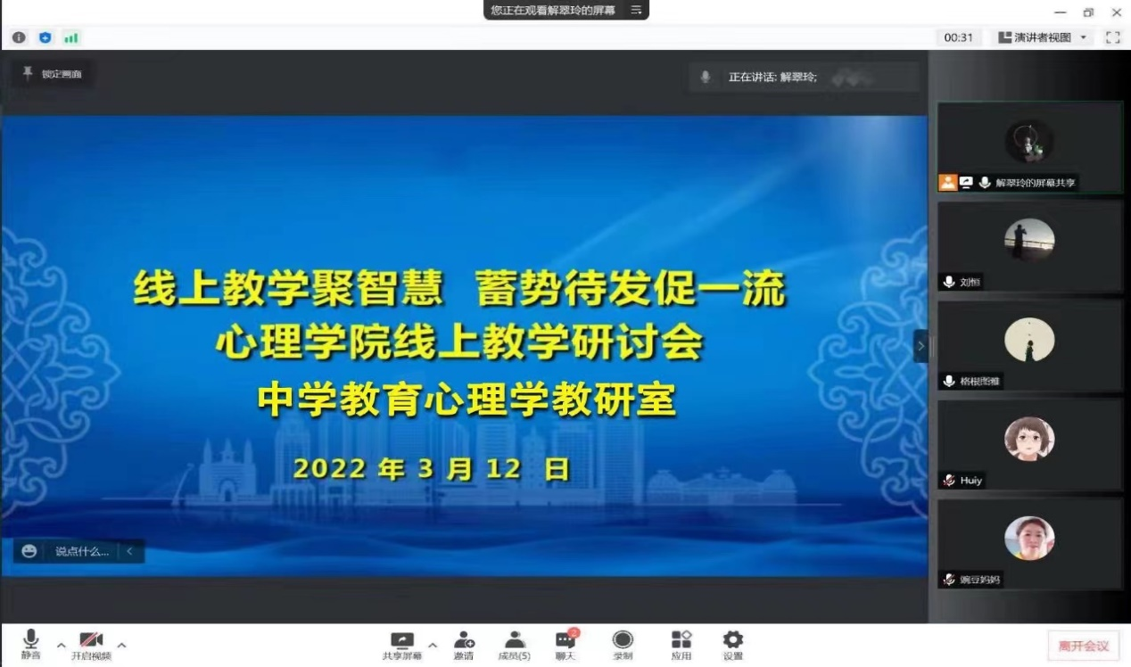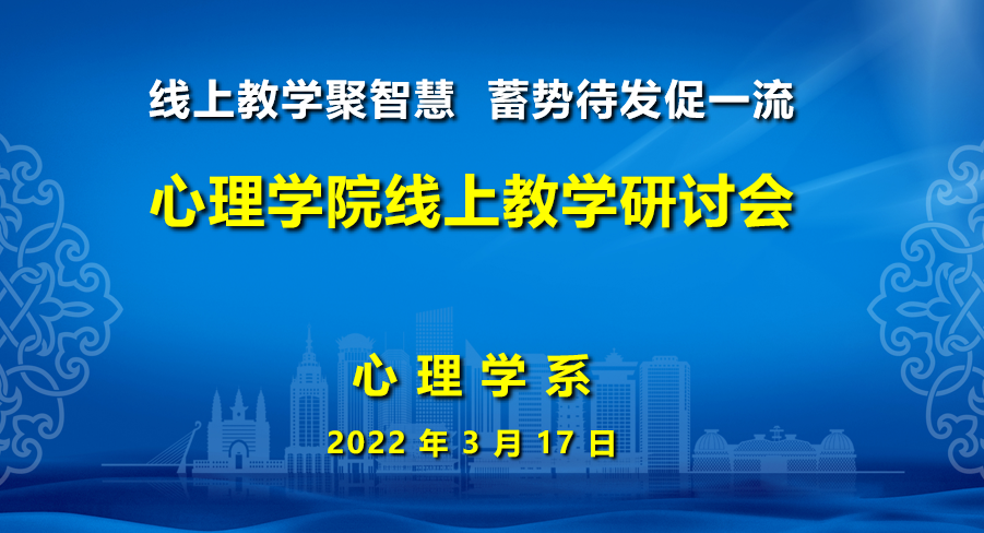 为进一步加强必赢官网线上教学组织管理工作,全力保障线上教学质量,按照学校相关要求,3月12日-17日,学院心理学系、中学教育心理学教研室和职业教育心理学教研室分别以“线上教学聚智慧,蓄势待发促一流”为主题召开了线上教学工作交流研讨会。