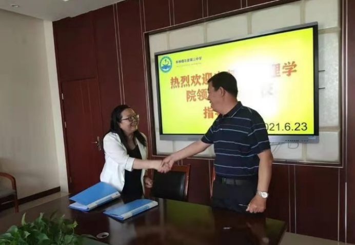 为深入贯彻国家教育方针政策,依托心理学学科专业优势,精准扶智,同时实现师范生高质量教育实践,全面推进学院与地方教育实践基地深度合作,6月23日,必赢242net官网院长乌云特娜、副书记兼副院长张晓阳和心理学系主任杨晓峰一行三人,赴呼和浩特市和林格尔县第一中学、第二中学和第三中学,走访实践基地,签订教育实践基地共建协议,并与基地校领导老师、实习学生进行座谈研讨。和林县三所学校的校长、副校长、教导处主任、实习指导教师等分别参加仪式。