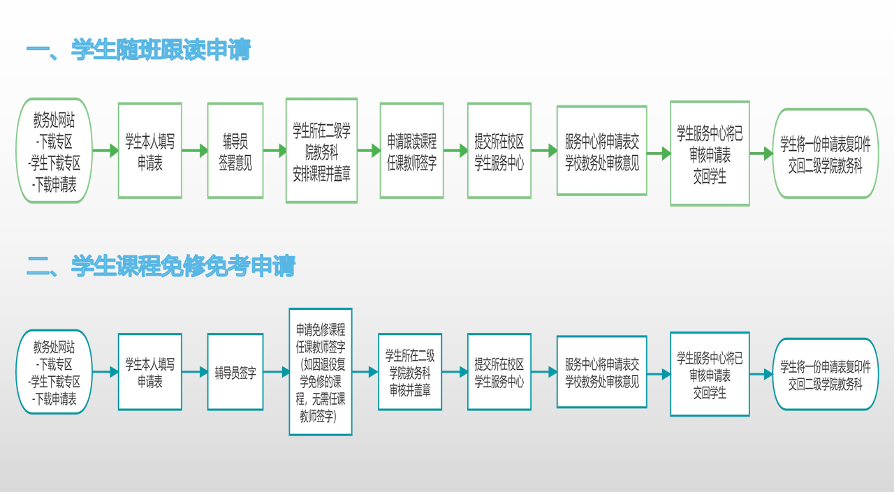 随班跟读、免修免考、重修费免交、缓考申请流程