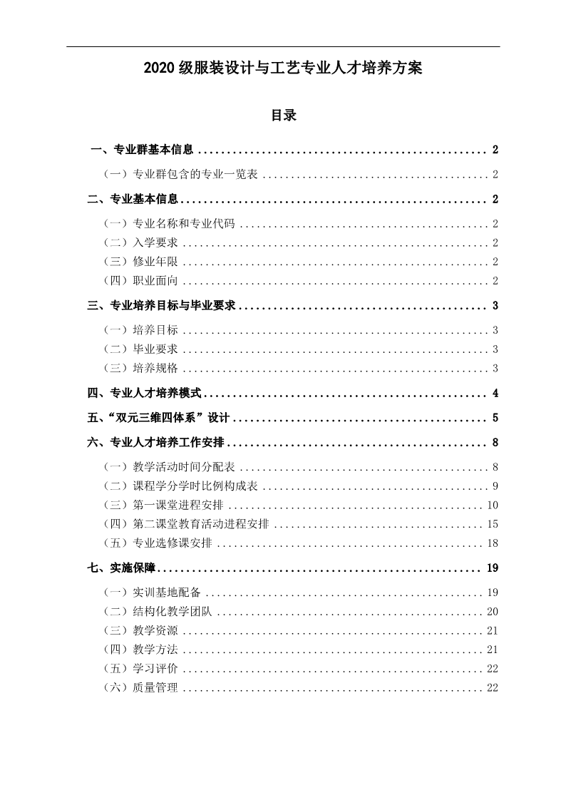 2020服装设计与工艺专业人才培养方案