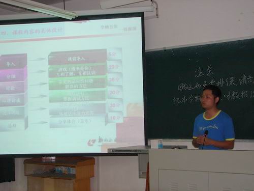 在2010级学生心理健康教育课程开课前夕举办的这次教学技能大赛是一次非常好的集体备课活动,它的意义在于三个方面,一是让教师们把静态的个人备课转化为一定范围内动态的集体讨论,形成较好的教学研讨的气氛。二是通过说课这样的形式让教师们在教育教学理念、教学内容、教学方法的设计以及一些带有创新性的研究成果等方面进行了交流和分享,有助于教师更新教育理念,提升教学基本功。三是说课活动要求教师在较短的时间内讲清“教什么”、“怎么教”,以及“为什么这样教”等教学问题,因此它也是考评教师专业知识、分析教材能力、设计教学能力、教学技能和教育理论素养的有效手段。