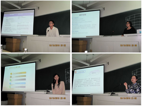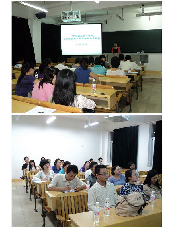 为进一步提高高职学生心理健康教育教学团队的教科研水平,促进本团队教师素质的全面发展,大面积提高教学质量,2010年10月10日晚高职学生心理健康教育教学团队在博文楼406教室举行了教学团队全体教师课程教学培训活动,培训对象为心理健康教育教学团队全体教师,培训活动由课程负责人左妮红副教授主持。